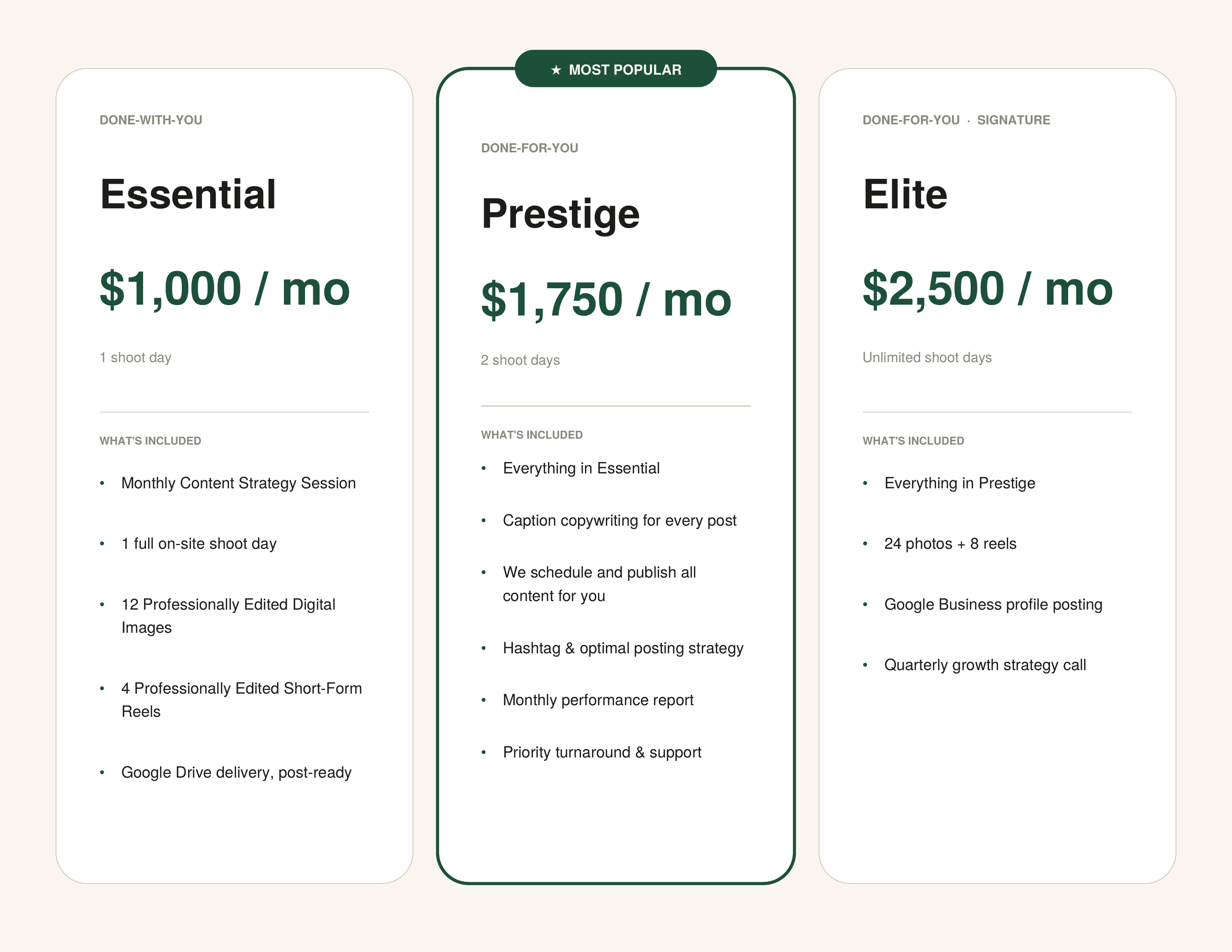 Book a 20 min FREE discovery call. We’ll talk through your goals, brand-alignment, and whether or not we’re the right fit for you. No pitch, no pressure.